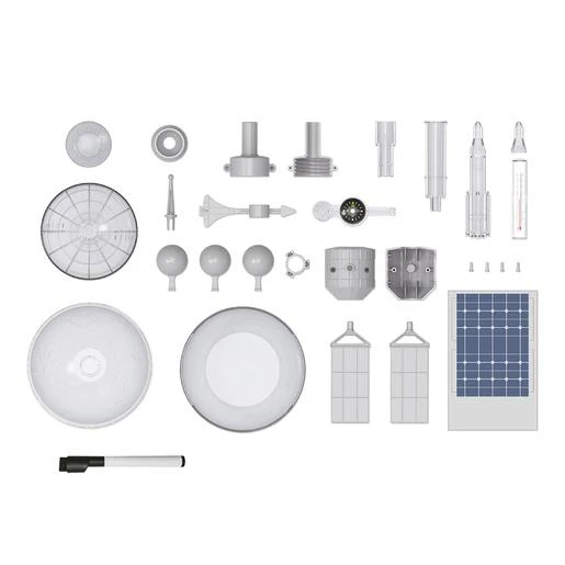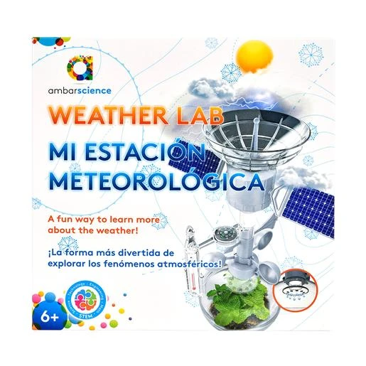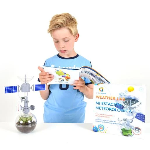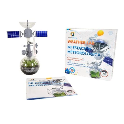 Contiene todas las piezas necesarias para construir una estación meteorológica, etiquetas y manual educativo.
