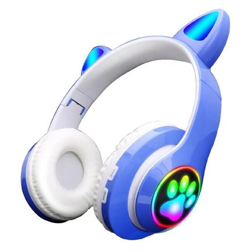 Auriculares orejas de gato bluetooth azul, auriculares con bluetooth y micrófono.