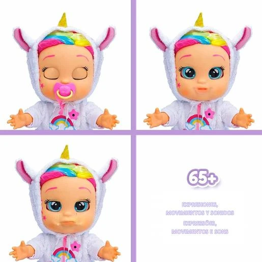 Bebés Llorones First Emotions – Dreamy, una muñeca unicornio monísima que tiene pelo real multicolor y viene con un peine personalizado para que la puedas peinar. Además, parpadea con sus ojos grandes de cristal que la hacen irresistible.