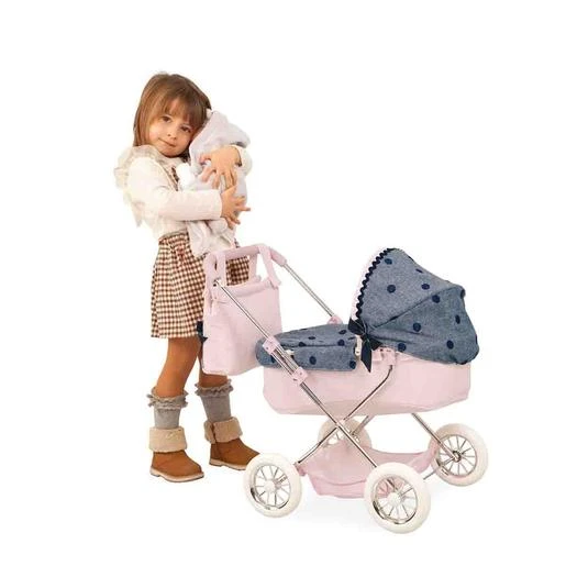Coche Muñeca Lucía con Bolso, un carro para muñeco que incluye capazo con capota, cubrecapazo y un bolso para guardar todas las cosas que necesita tu bebé.