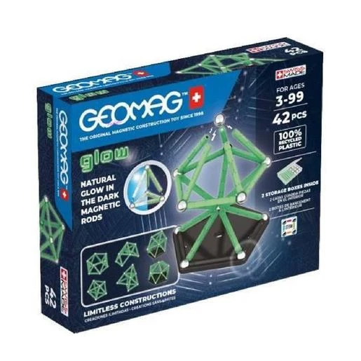Geomag – Glow recycled 42 pzs, Set de construcción magnética que brilla en la oscuridad.