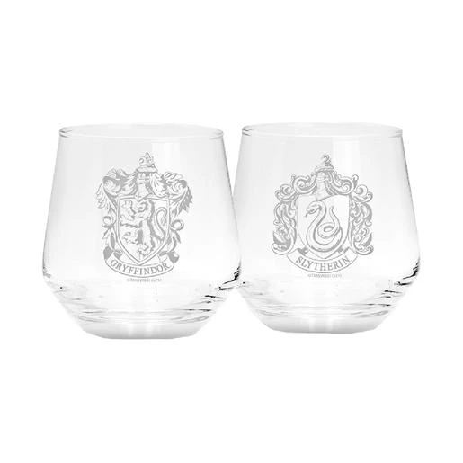 Se trata de un pack de dos vasos fabricados en cristal de la mejor calidad, y con un diseño inspirado en el Colegio de Magia y Hechicería Hogwarts, al que asisten Harry, Hermione y Ron, y más en concreto en dos de las casas que lo integran: Gryffindor y Slytherin, con sus escudos representados con todo detalle.