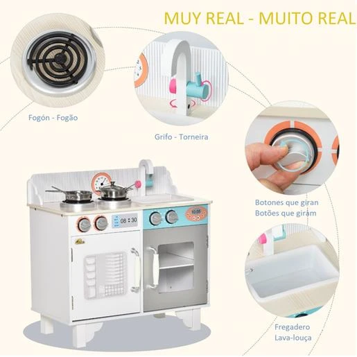 Homcom – Cocina de madera, una preciosa cocinita de juguete que encantará a los más pequeños.