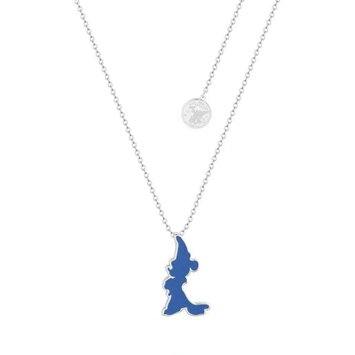 Mickey Mouse – Silueta azul – Colgante bañado en oro blanco, un colgante de Mickey Mouse.