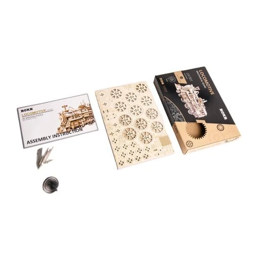 Locomotora – Puzzle de madera 3D, diviértete montando esta locomotora única y decorativa.
