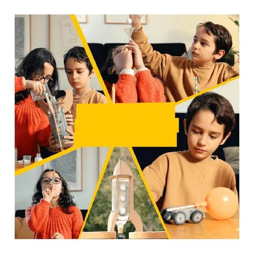 Descubre con los 13 experimentos y actividades disponibles en este juguete educativo, cómo diseñar y crear la forma de tu cohete con divertidos prototipos y cohetes inflables. Descubre todo sobre la propulsión y fabrica combustible para cohetes.