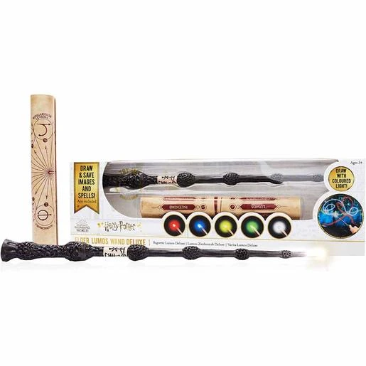 Cuenta con una potente luz LED en uno de los extremos que cambia de color y la app para móvil asociada al producto, con la que podrás grabarte dibujando algunos de los hechizos más conocidos de la saga.